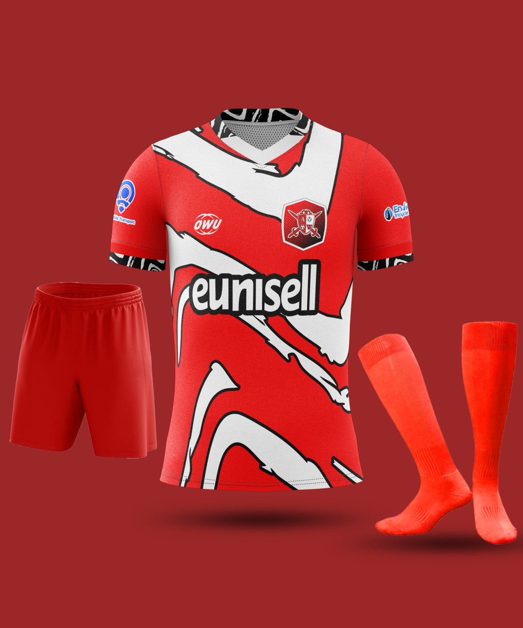 The kit includes matching red short and red socks.